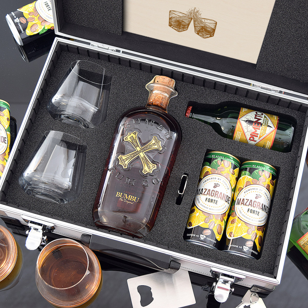 Hledáte dárek pro tátu, dárek pro dědu, dárek k narozeninám pro milovníka kvalitního rumu? Máme pro vás skvělý tip na dárek - dárkový kufr Bumbo! Tento stylový kufr je ideálním doplňkem pro přenos a skladování oblíbeného destilátu. Je vyroben z kvalitního materiálu, aby ochránil láhve před poškozením a zároveň dodal celkovým dojmu na luxusním designu. Tento dárek určitě potěší každého, kdo má rád kvalitní Rum. Objednejte si nyní a překvapte své blízké originálním dárkem!